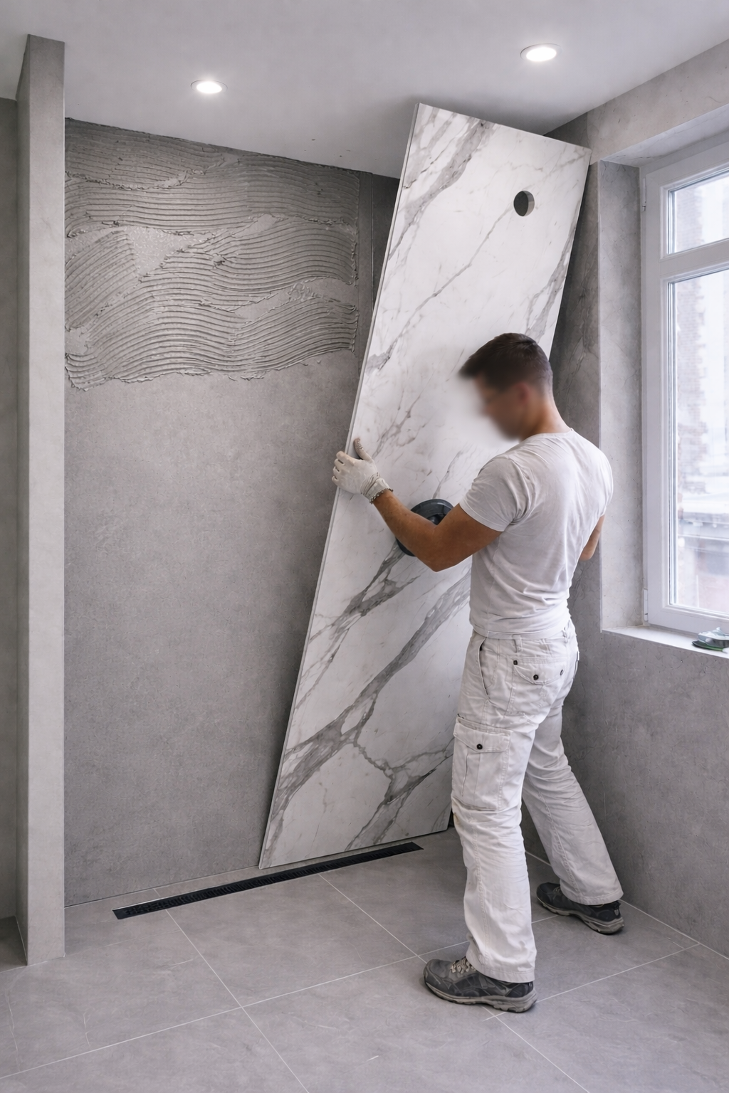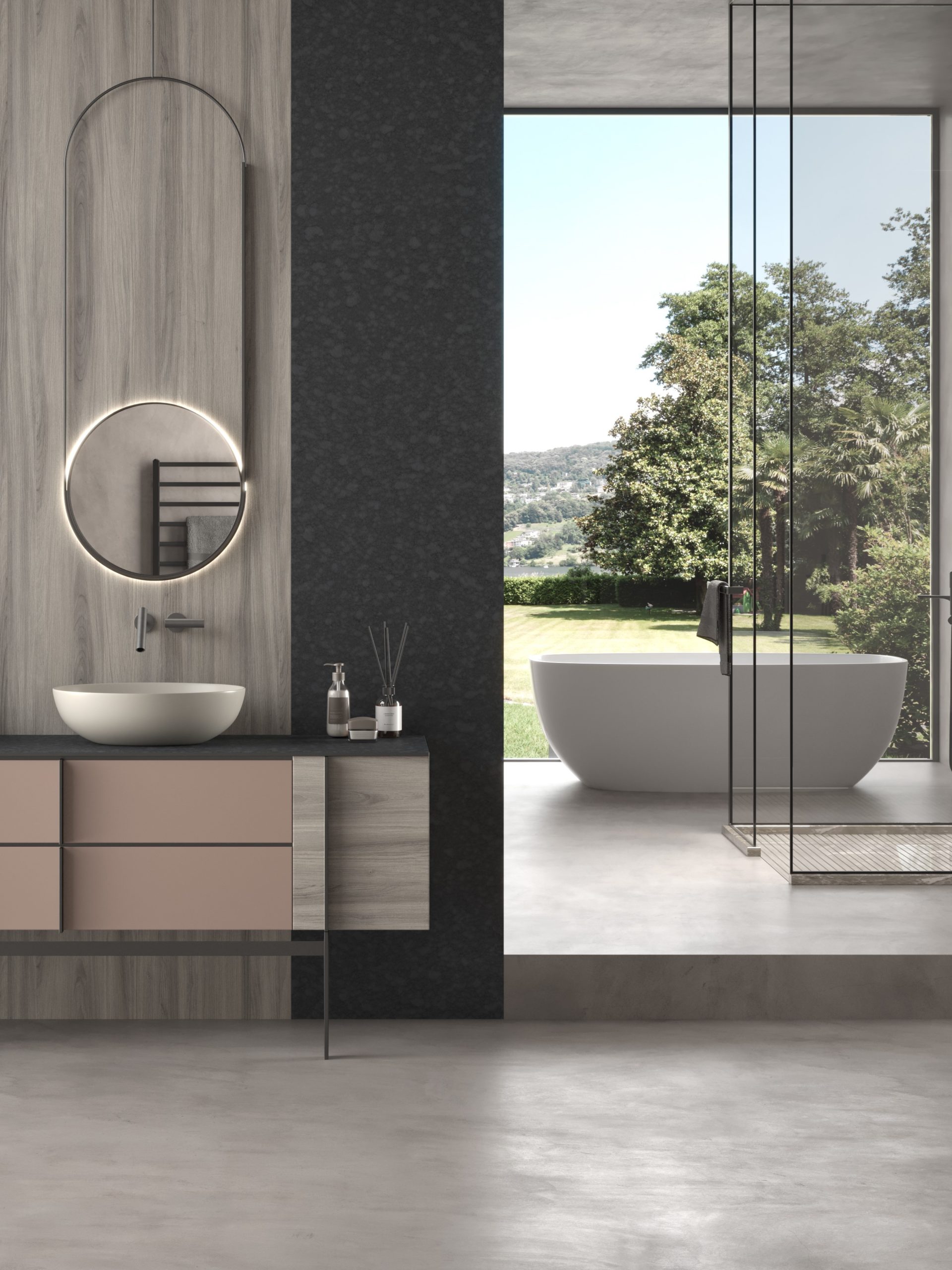 D’aspect minéral, en harmonie avec votre ambiance. La solution sans joint, d’entretien facile.